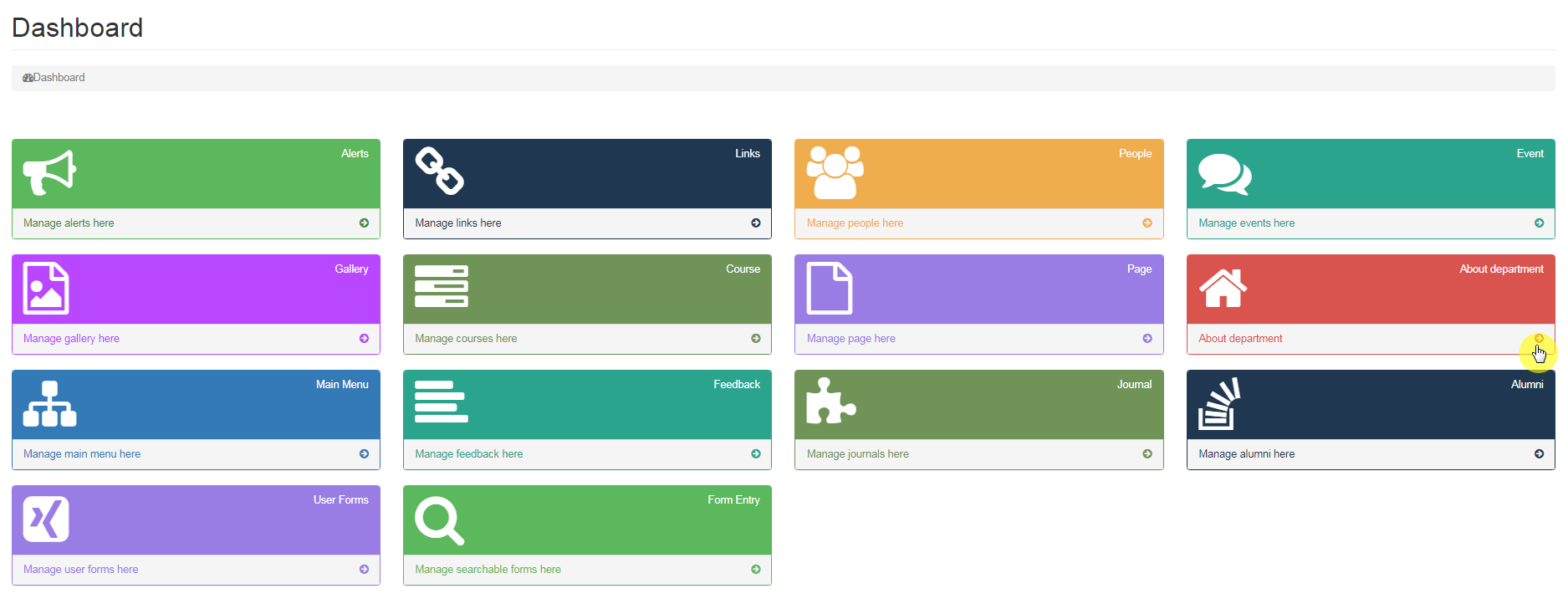 In this section, user can update the details of their department Page by editing the section and saving the details.